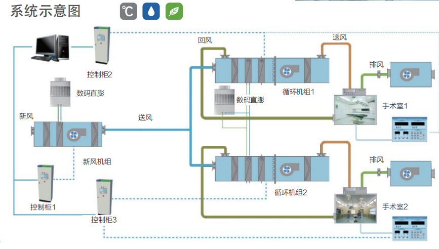 FCA-H系列手術(shù)室空調(diào)控制系統(tǒng),針對(duì)手術(shù)凈化系統(tǒng)通常采用一臺(tái)新風(fēng)機(jī)組供給多臺(tái)循環(huán)機(jī)組的分布特點(diǎn),采用了DCS集散式控制方式,既實(shí)現(xiàn)了管理、操作和監(jiān)視的集中,又實(shí)現(xiàn)了在功能、負(fù)荷的分散,降低管控風(fēng)險(xiǎn)的同時(shí)降低維護(hù)成本。