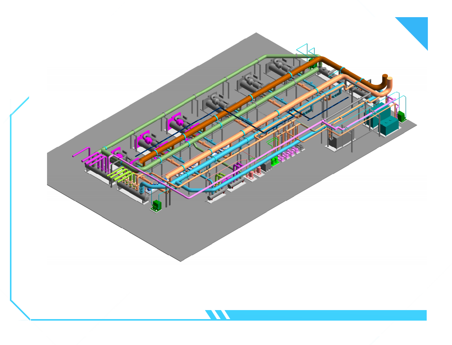 項目一期實施范圍包括可孚健康監(jiān)測產(chǎn)品制造中心、原料智能供應(yīng)中心、醫(yī)療護(hù)理產(chǎn)品制造中心以及宿舍樓集中供冷、供暖優(yōu)化,一期總制冷量達(dá)5400RT(3臺1800RT磁懸浮機(jī)組),燃?xì)忮仩t6300kW(4200kW+2100kW)。
